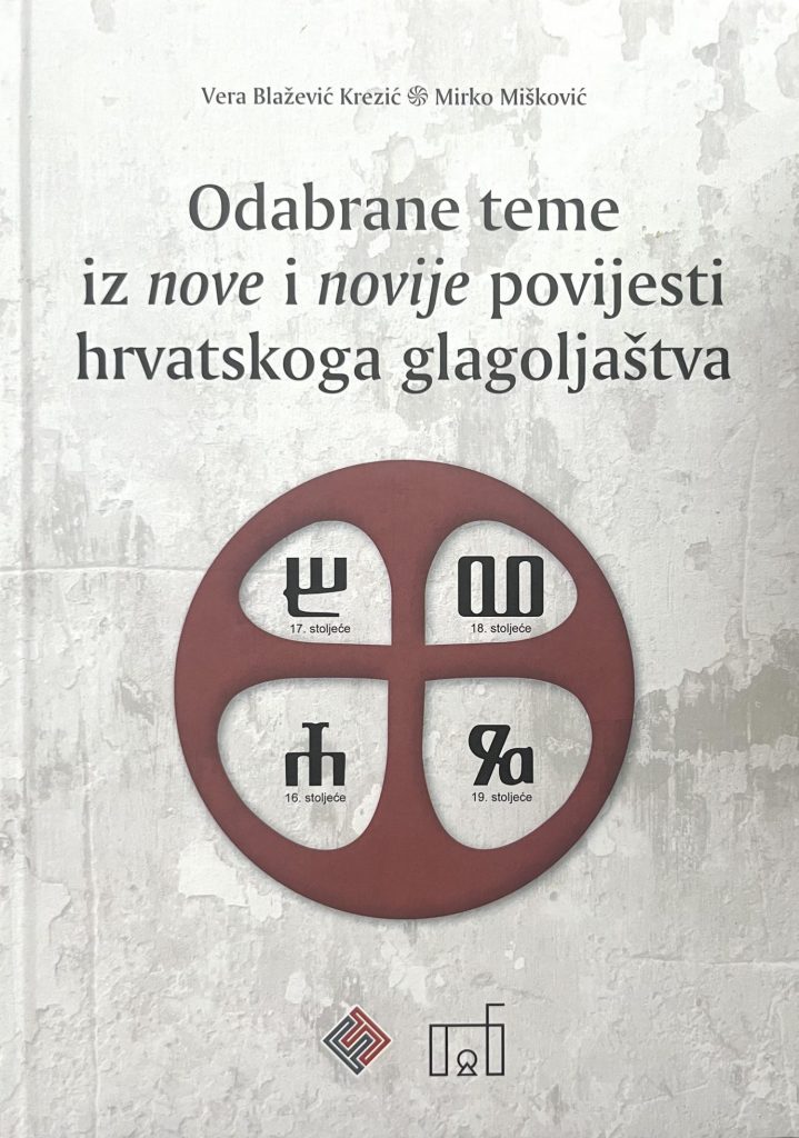 Filozofski fakultet u Osijeku i Provincija franjevaca trećoredaca glagoljaša u Zagrebu nakladnički su dvojac zaslužan za objavljivanje knjige »Odabrane teme iz nove i novije povijesti hrvatskoga glagoljaštva« doc. dr. sc. Vere Blažević Krezić s Odsjeka za hrvatski jezik i književnost i Katedre za hrvatsku jezičnu povijest i hrvatsku dijalektologiju pri Filozofskome fakultetu u Osijeku i Mirka Miškovića, doktoranda Sveučilišnoga doktorskoga studija »Jezikoslovlje« na Filozofskome fakultetu u Osijeku i franjevca trećoredca glagoljaša iz Samostana sv. Franje Ksaverskoga u Zagrebu.